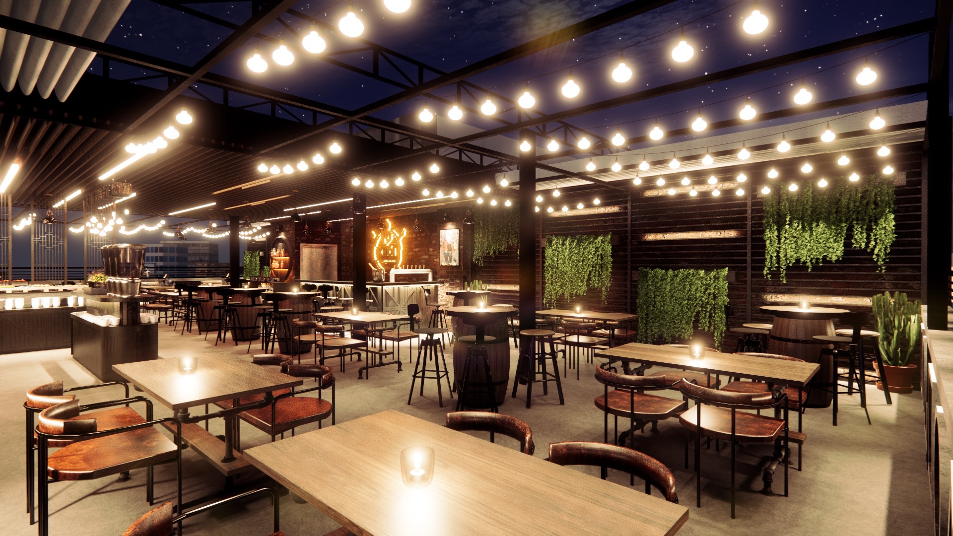 FA247 took on the role of main contractor for Khói Rooftop, a vibrant F&B destination in Ho Chi Minh City. The project required a creative design that maximizes open-air space, delivers a unique atmosphere, and ensures both functionality and style.